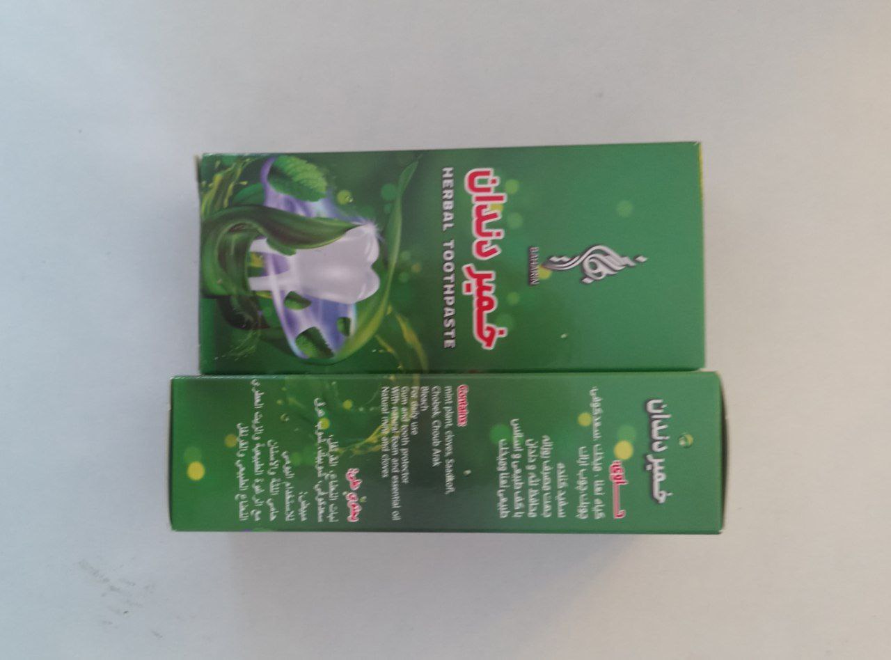 خمیردندان گیاهی حاوی نعنا، میخک، سعد کوفی، چوبک چوب اراک  خواص: سفیدکننده، محافظ لثه و دندان، با کف طبیعی و اسانس طبیعی نعنا و میخک، جهت مصرف روزانه